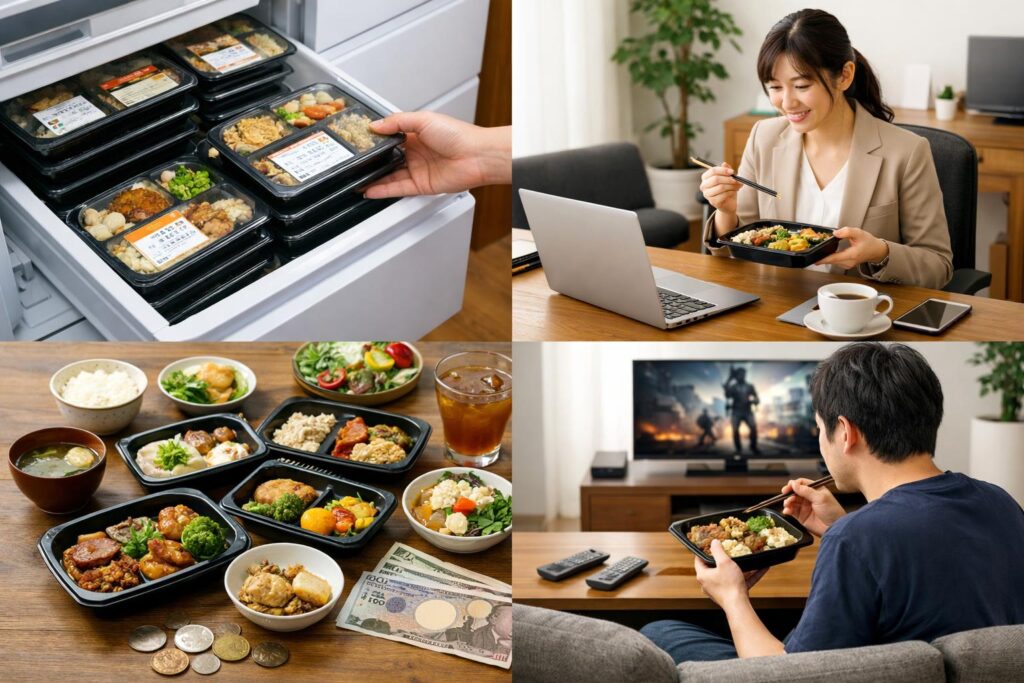 | 休日昼 | 時間に余裕があるので自炊メインにして、冷凍宅配弁当はストックとしてキープ | 在庫を温存し、急な残業日や体調不良の日に回すことで無駄な外食を防げる |
